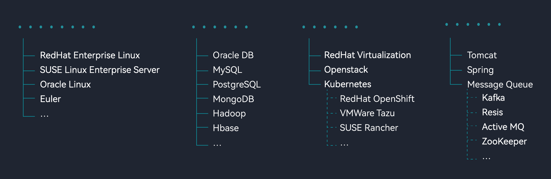 网思科技作为Redhat,Oracle,IBM,华为,腾讯、麒麟等厂商产品的高级合作伙伴,移动集采代理商,具备完善的服务资质和能力服务团队分布于四个大区19个城市,形成三级技术支持体系,拥有一批红帽专业认证RHCE/RHCA专家、Oracle OCP/OCM专家和Mysql等产品专家,运维管理解决方案专家和咨询顾问,提供覆盖全国范围专业而高效的的数据中心数智化解决方案与高可用运维支撑服务,为客户的数据中心安全运行和高效运营保驾护航。